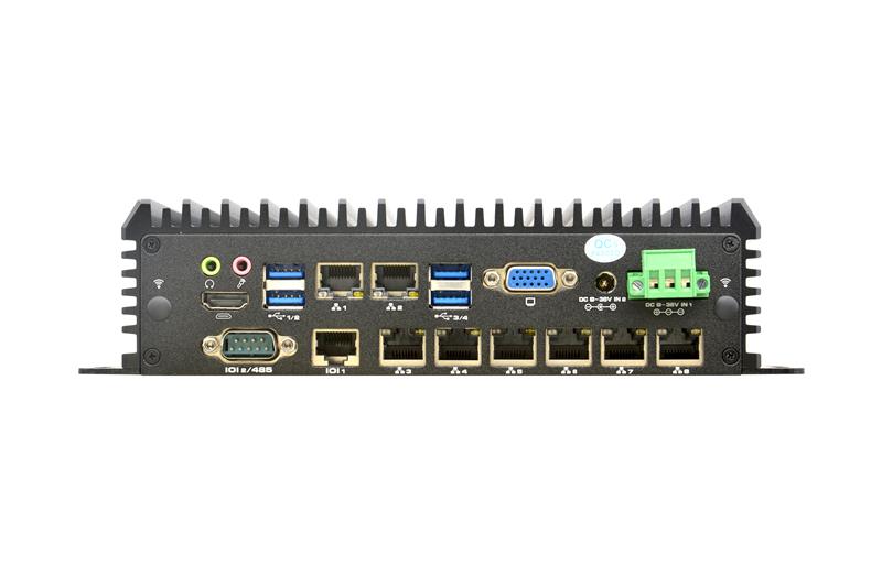 This compact and durable system supports up to 64GB DDR4 memory (2x32GB SODIMM) and dual storage options—mSATA SSD and 2.5" SATA SSD/HDD—making it both high-performing and versatile. It features 6x Intel® I210-AT and 2 x Intel i225-V 2.5 Gigabit LAN (supporting Wake-on-LAN and PXE boot), along with dual COM ports (DB9 RS232 and RJ45 console) for seamless communication and connectivity.